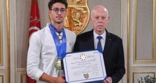 استقبل رئيس الجمهورية قيس سعيّد عصر هذا اليوم، الأربعاء بقصر قرطاج، البطل التونسي أحمد الجوادي الذي فاز بميداليتين ذهبيتين في بطولة العالم للسباحة بسنغافورة. وتولّى رئيس الدّولة بهذه المناسبة منحه الصنف الأوّل من الوسام الوطني للاستحقاق في قطاع الرياضة. وتوجه …