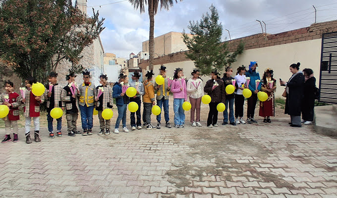 بالاضافة الى تزيينِ جدرانِ المدرسةِ برسوماتٍ ملونةٍ ورائعةٍ لإضفاءِ جوٍ من البهجةِ والتفاؤل.