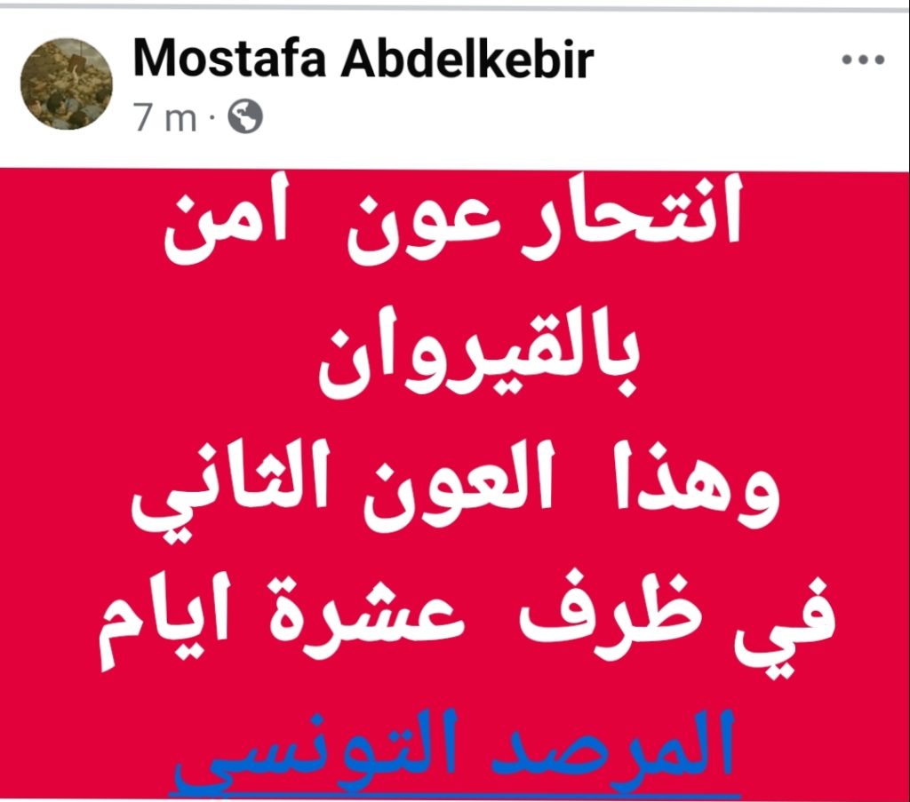 يذكر ان حادثة مماثلة جدتبالقيروان خلال الاسبوع المنقضي، اين اقدم عون امن بمركز نصر الله، على تصويب رصاصة من سلاحه الفردي تجاه نفسه، أردته قتيلا.