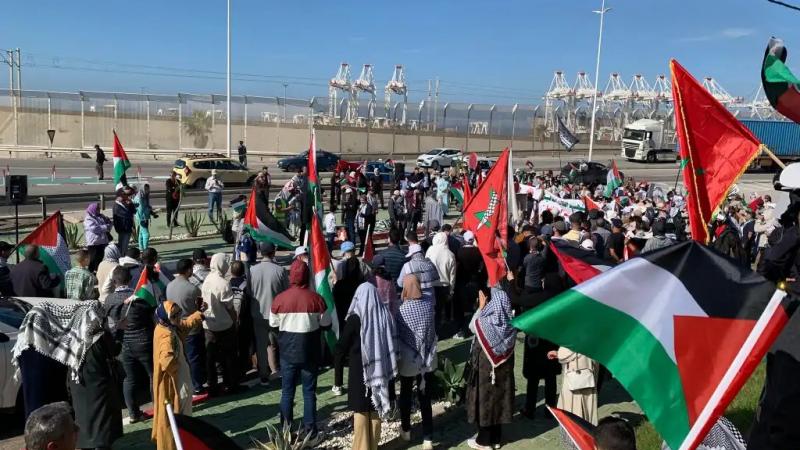 وردد مئات النشطاء شعارات مؤيدة لغزة ومناهضة للتطبيع، وعبروا عن رفضهم بأن “تتحول الموانئ المغربية إلى جسر لإبادة الشعب الفلسطيني”.