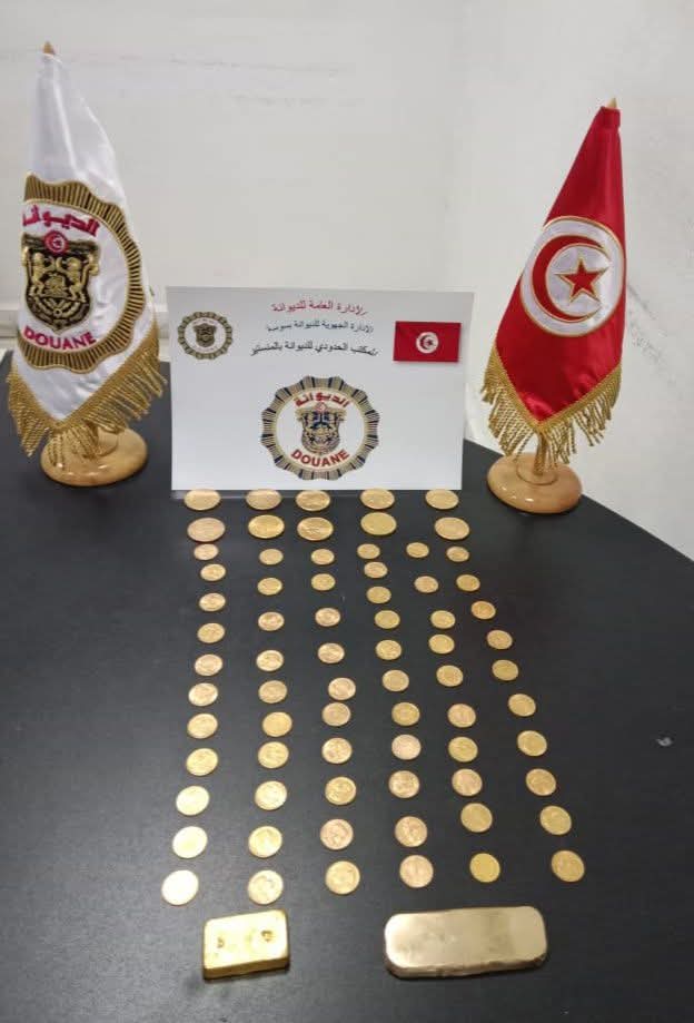 تمكنت مصالح الديوانة بمطار المنستير بالتنسيق مع المصالح الأمنية بالمطار، من إحباط محاولة تهريب كمية من معدن الذهب في شكل سبائك وقطع نقدية كانت مسافرة تحمل جنسية تونسية تحاول تصديرها دون اعلام إلى خارج البلاد التونسية بقيمة جملية قدرت بـ 354 ألف دينار.