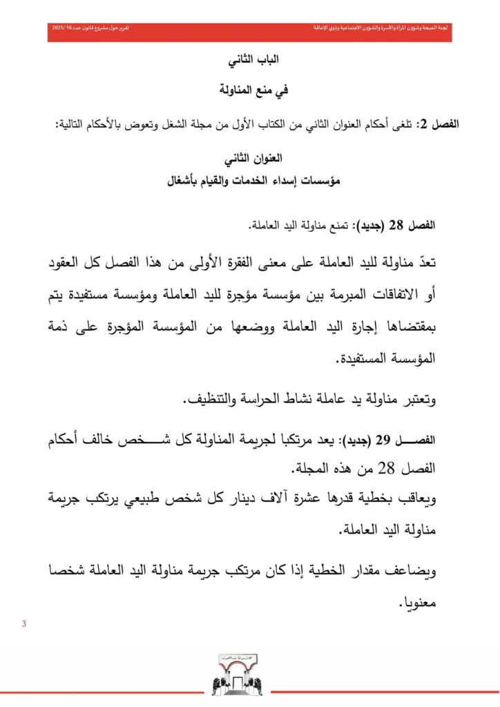 صادق مجلس نواب الشعب فجر اليوم الأربعاء 21 ماي 2025 على مشروع القانون عدد 16 لسنة 2025 المتعلق بتنظيم عقود الشغل ومنع المناولة.