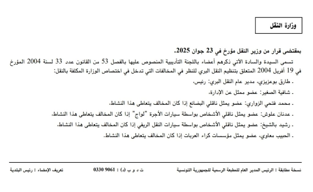 عاجل/ تسميات جديدة بهذه الوزارة.. 2025/06/24 أهم الأخبار, المصدر, مجتمع شاركها Facebook Twitter Google + صدرت بالعدد الاخير للرائد الرسمي للجمهورية التونسية بتاريخ 23 جوان 2025 تسميات جديدة بوزارة النقل وفي ما يلي التفاصيل.. 2025-06-24 hejer krimi