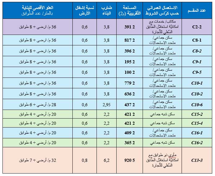 وفيما يلي بيان للمعطيات والخصائص الفنية للمقاسم المعروضة للبيع: