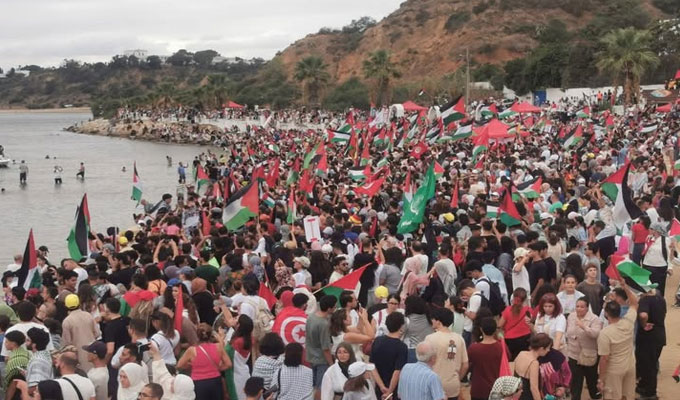 وأكدت، أيضا، أنّ العمل من أجل كسر الحصار على غزة متواصل ولن يتوقّف إلاّ برفع الحصار البري والبحري كليّا، وأن التضامن مع الشعب الفلسطيني لن يتوقف الا بتحرير كل فلسطين من النهر الى البحر.