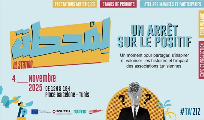 تحوّلت ساحة برشلونة، يوم الثلاثاء 4 نوفمبر، إلى فضاء نابض بالحياة والإبداع والعمل الجماعي بمناسبة تنظيم فعاليّة “لمحطّة”، التي بادر بها مختبر الاقتصاد الاجتماعي والتضامني لاباس في إطار مشروع تعزيز – استدامة وتمكين النسيج الجمعياتي التونسي، المموّل من قبل الاتحاد الأوروبي وسفارة كندا.