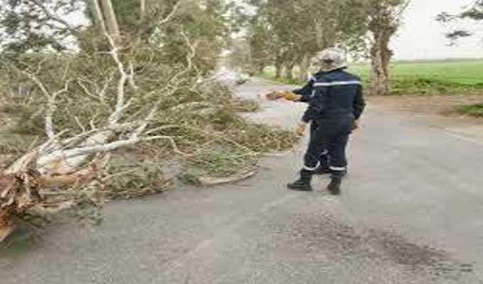 تدخّلت فرق الحماية المدنية بالطريق الوطنية رقم 5 وبطريق مستوتة بباجة الجنوبية وبتبرسق لإزاحة الأشجار المتساقطة بالطرقات بسبب الرياح القوية التي هبّت، أمس الأربعاء، على ولاية باجة ووصلت سرعتها الى 100 كيلومتر في الساعة، وفق ما ذكره مصدر من الحماية المدنية لوكالة تونس إفريقيا للأنباء.