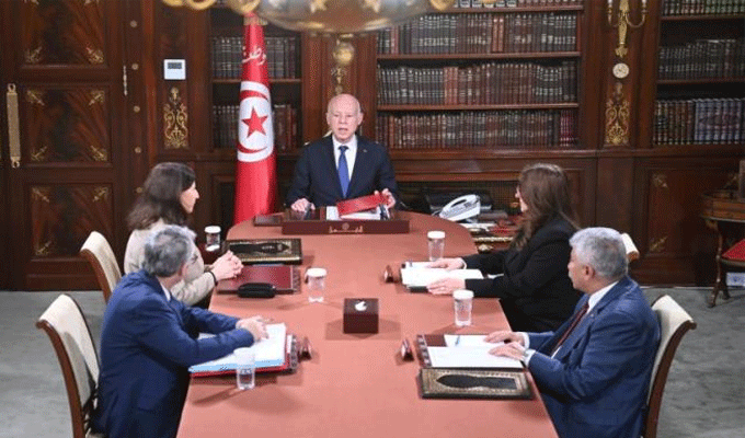 أشرف رئيس الجمهوريّة قيس سعيّد عصر يوم أمس، بقصر قرطاج، على اجتماع ضمّ كلاّ من رئيسة الحكومة سارة الزعفراني الزنزري، ووزيرة الماليّة مشكاة سلامة الخالدي ،ووزير الشّؤون الاجتماعية عصام الأحمر، ووزير التّشغيل والتّكوين المهني رياض شوّد