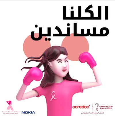 من خلال هذا الحدث، تجسد Ooredoo تونس التزامها تجاه المجتمع التونسي وتطلق هذه المرة حملة توعية حول الكشف المبكر عن سرطان الثدي وجمع التبرعات لصالح الجمعية التونسية لمساعدة مرضى سرطان الثدي (ATMCS).