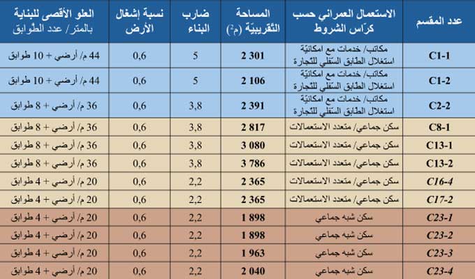وفيما يلي بيان للمعطيات والخصائص الفنّية للمقاسم المعروضة للبيع: